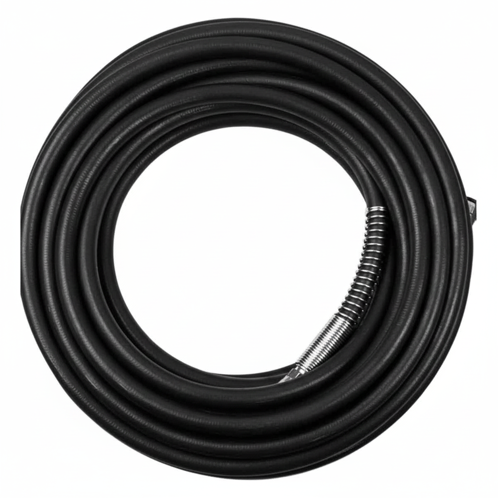 - Movilidad Superior: La manguera de alta presión de 7.6 metros (en color negro) le proporciona un amplio radio de acción, facilitando pintar techos y áreas alejadas sin tener que mover el equipo constantemente.