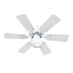Hermoso ventilador de techo decorativo equipado con 6 aspas color blanco, ideal para dar aire fresco a recepciones, salas, estudios y/o zonas pequeñas que además ilumina el espacio en dónde esté. Su color blanco y sus aspas reversibles le añade un estilo clásico minimalista y cómodo a la habitación.