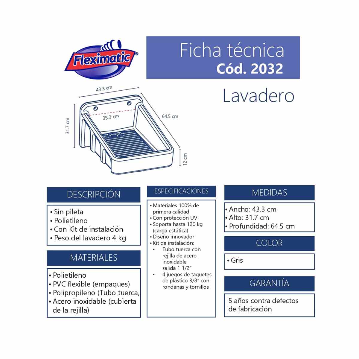 Lavadero Polietileno Sin Pileta 43.3 X 64.5 CM Fleximatic
