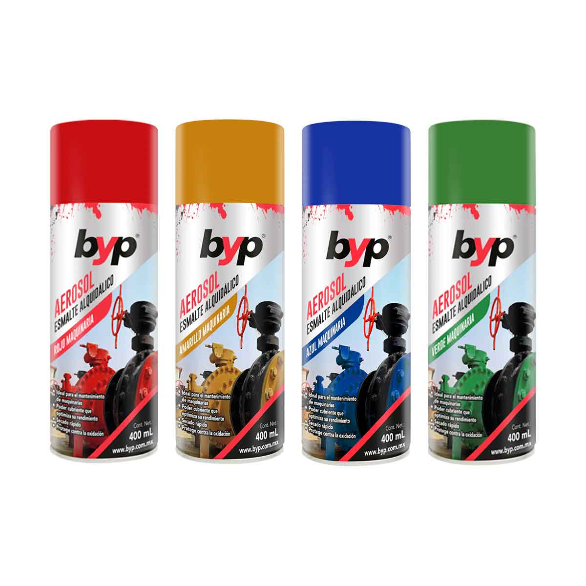 Pintura En Aerosol Maquinaria 400ML BYP Rojo Amarillo Azul O Verde