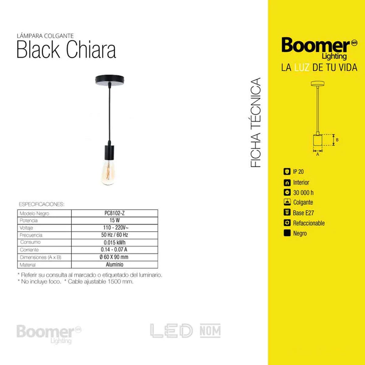 Socket Luminario Led Chiara Colgante Para Foco 15W E27 Negro