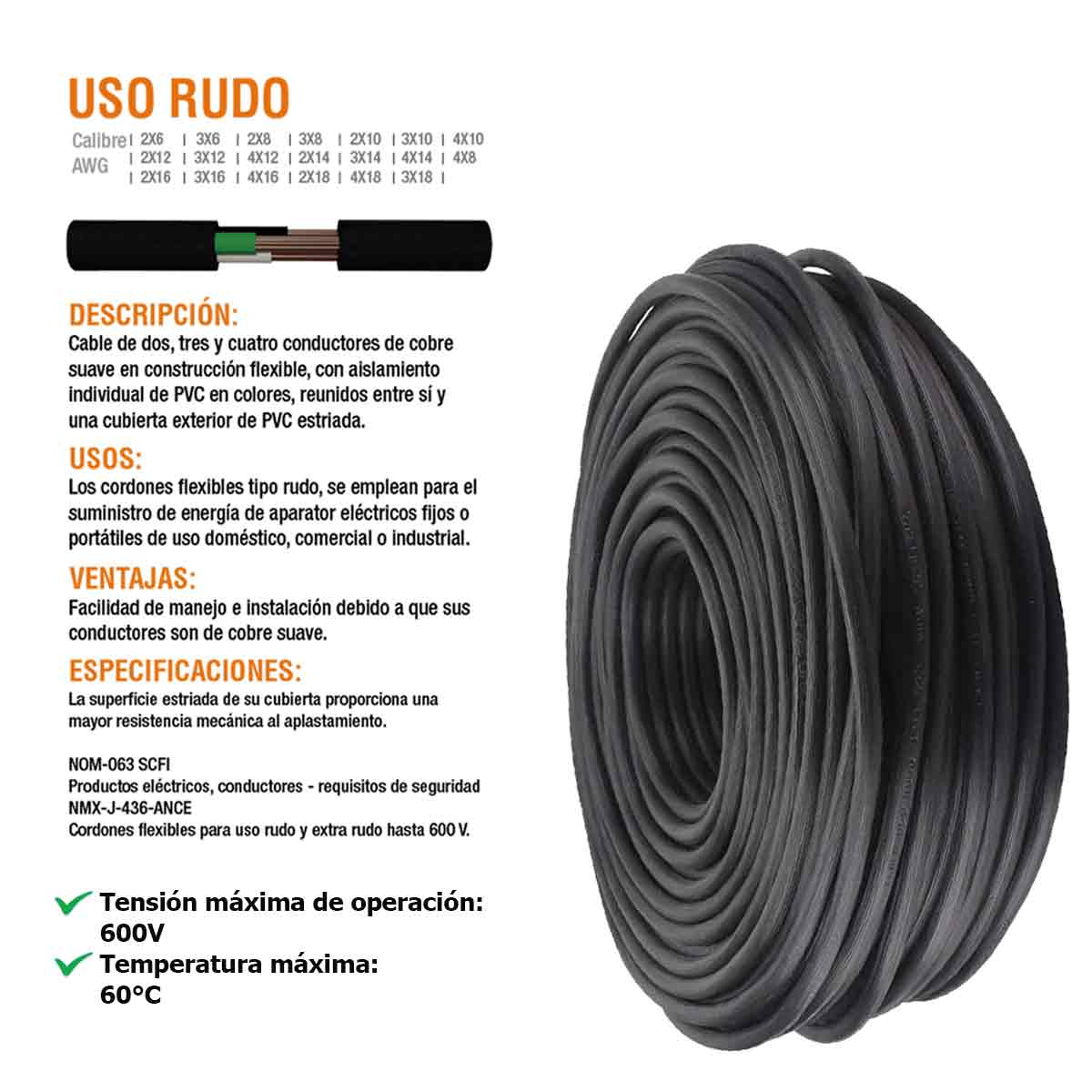 Nueva presentacion de 30 metros de cable uso rudo St 4X14 negro 100% cobre 600V con NOM Cdc