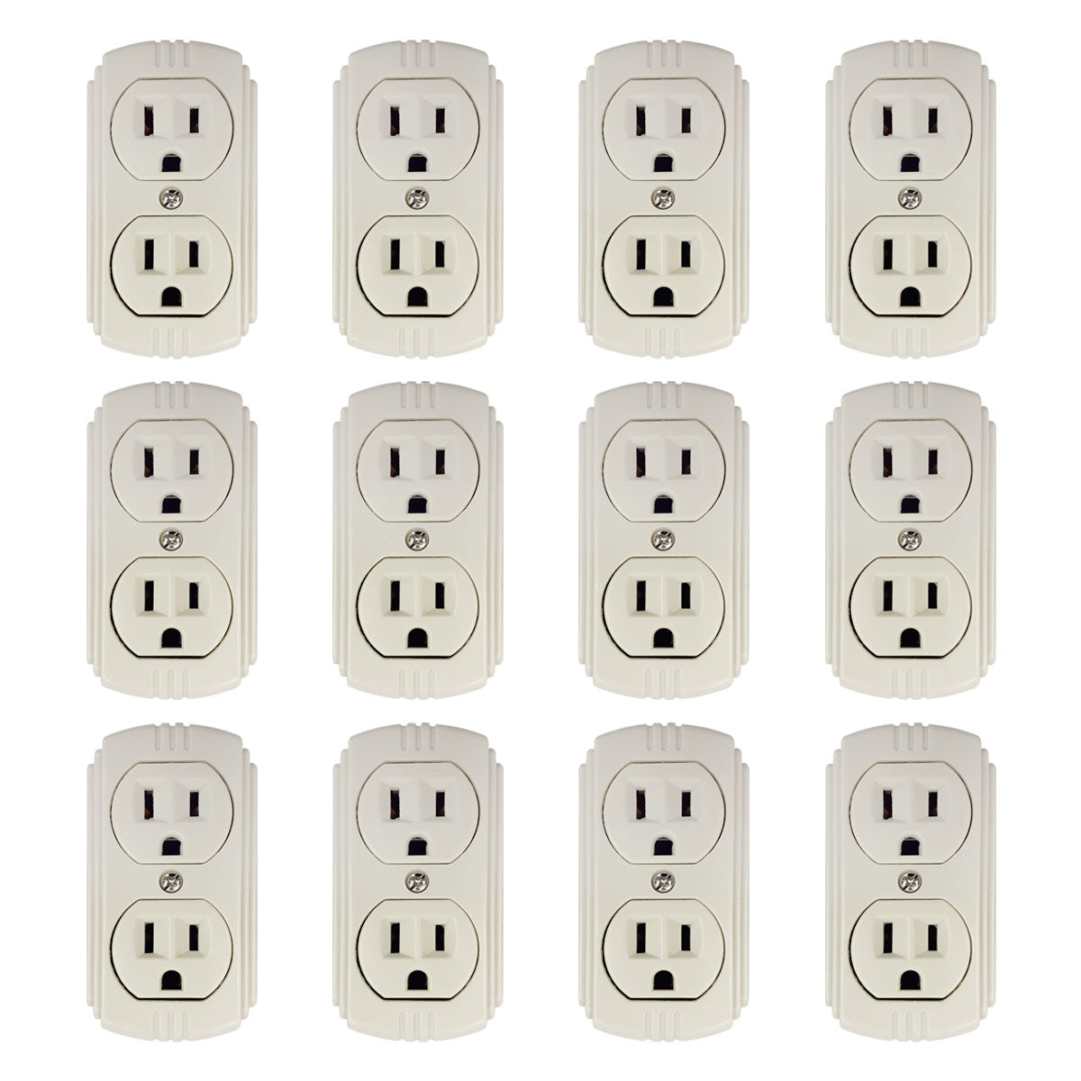 Paquete de 12 contactos duplex para sobreponer aterrizados color marfil, ideal para para los proyectos de hogar, taller, oficina, etc. Además que puede ser colocado sobre muros, madera, tablaroca y más materiales, cumple con NOM.