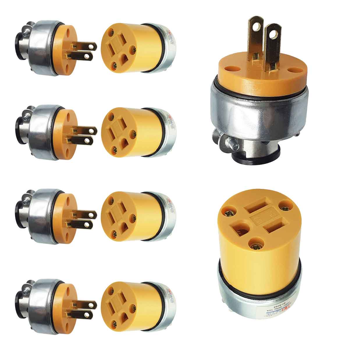 Paquete de 5 clavijas bifásicas y 5 contactos uso rudo perfecto para los trabajos del hogar, taller y más, cuenta con abrazadera metálica.