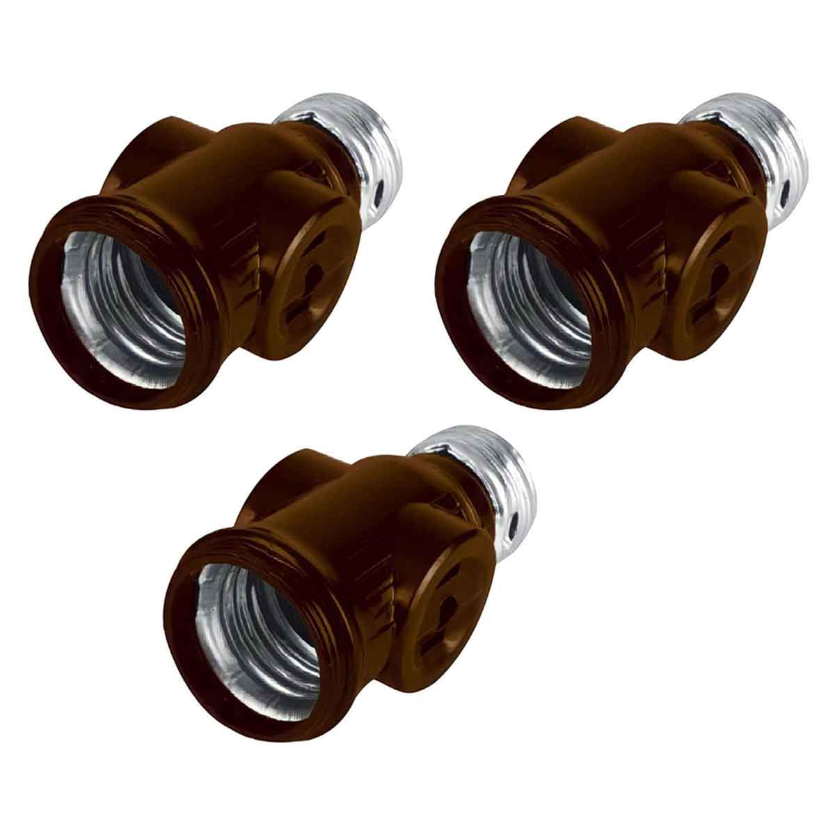 Pack 3 Portalampara Socket Doble Ladron Cafe Baquelita Igoto