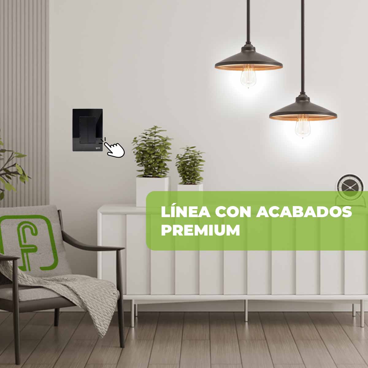 - Placa Armada Cristal Con 1 Apagador Sencillo de 3 Modulos Negro Igoto