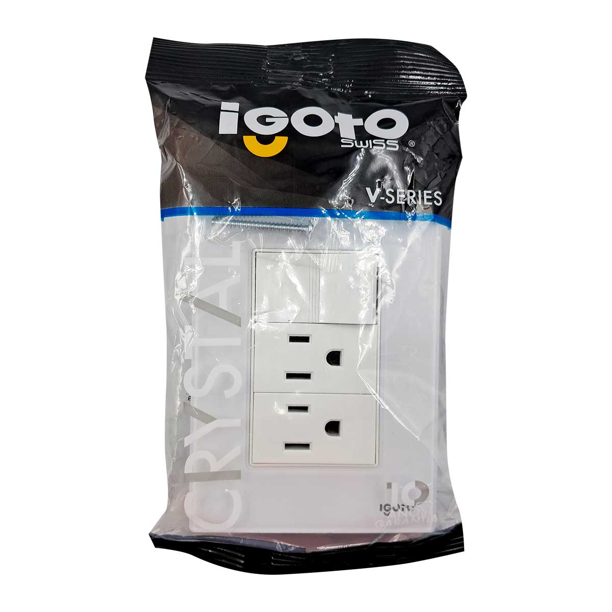 - Placa Armada Cristal Con 1 Apagador Sencillo Y 2 Contactos de 1 Modulo Blanco Igoto