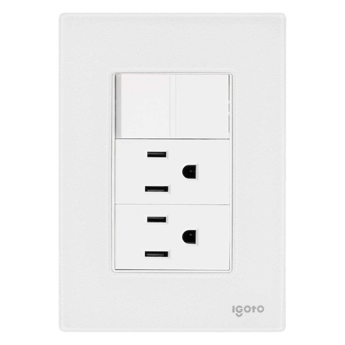 Placa Armada Cristal Con 1 Apagador Sencillo Y 2 Contactos de 1 Modulo Blanco Igoto