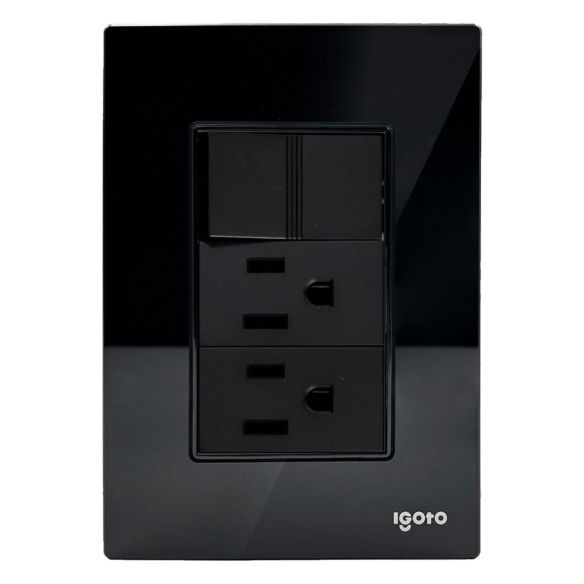 Placa Armada Cristal Con 1 Apagador Sencillo Y 2 Contactos de 1 Modulo Negro Igoto