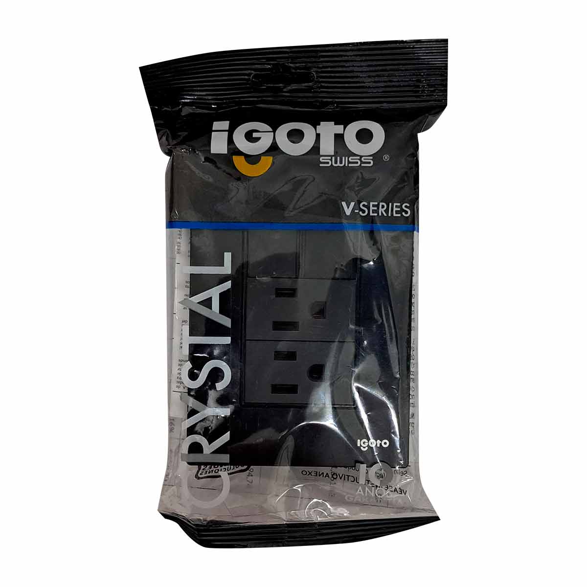 - Placa Armada Cristal Con 1 Apagador Sencillo Y 2 Contactos de 1 Modulo Negro Igoto