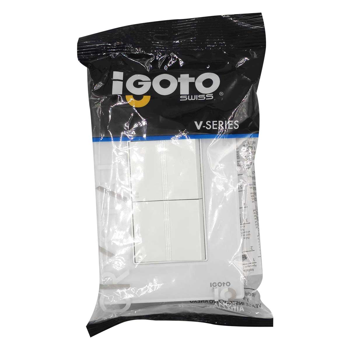 - Placa Armada Cristal Con 2 Apagadores Escalera de 1.5 Modulos Blanco Igoto