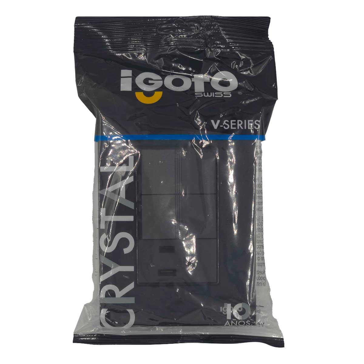 - Placa Armada Cristal Con 2 Apagadores Sencillos Y 1 Contacto de 1 Modulo Negro Igoto