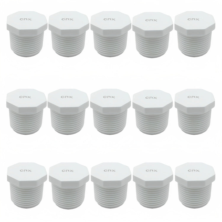 Paquete de 15 piezas de tapón con rosca externa de 1 1/2 pulgadas de CNX; es el accesorio perfecto para que se coloque al final de un tubo de PVC para detener el flujo de cualquier líquido o fluido que se traslade en el interior de este. Además, está fabricado en PVC hidráulico, teniendo una calidad superior a la competencia, por ser muy resistente a fracturas por impacto, a la corrosión y oxidación. Y lo mejor de todo es que no contamina fluidos que transporta y sin generar par galvánico.